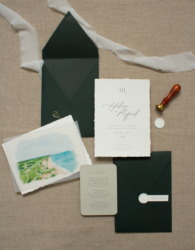Convites personalizados e papelaria de casamento feitos para noivos autênticos, que prezam por uma experiência única, atemporal e cheia de significado.