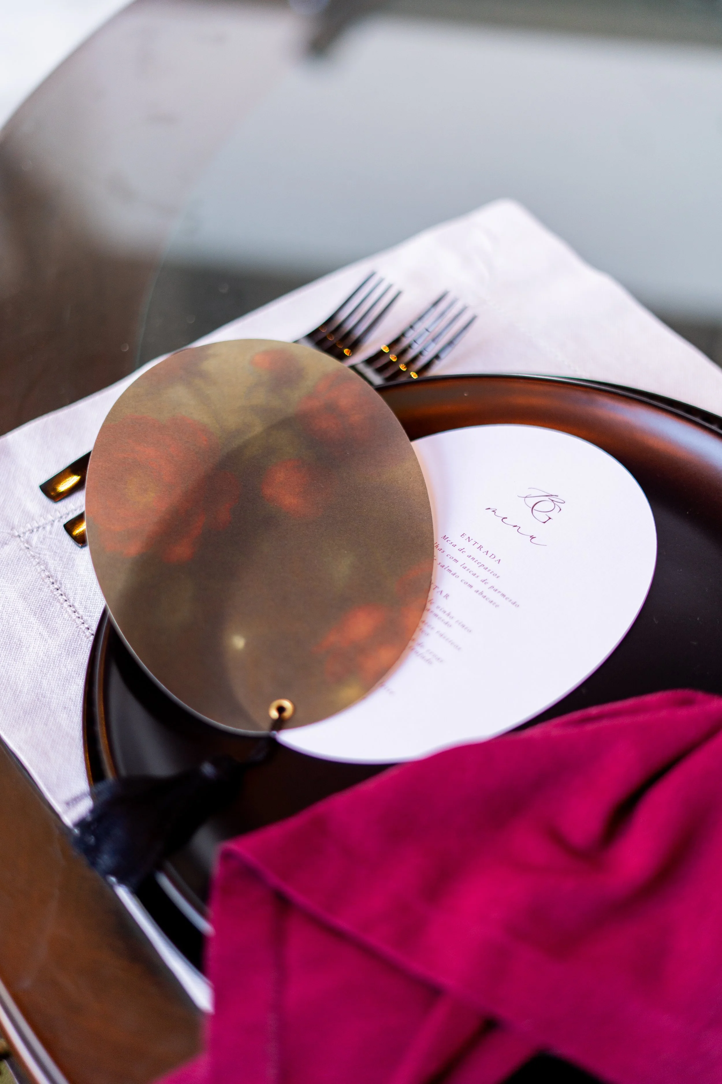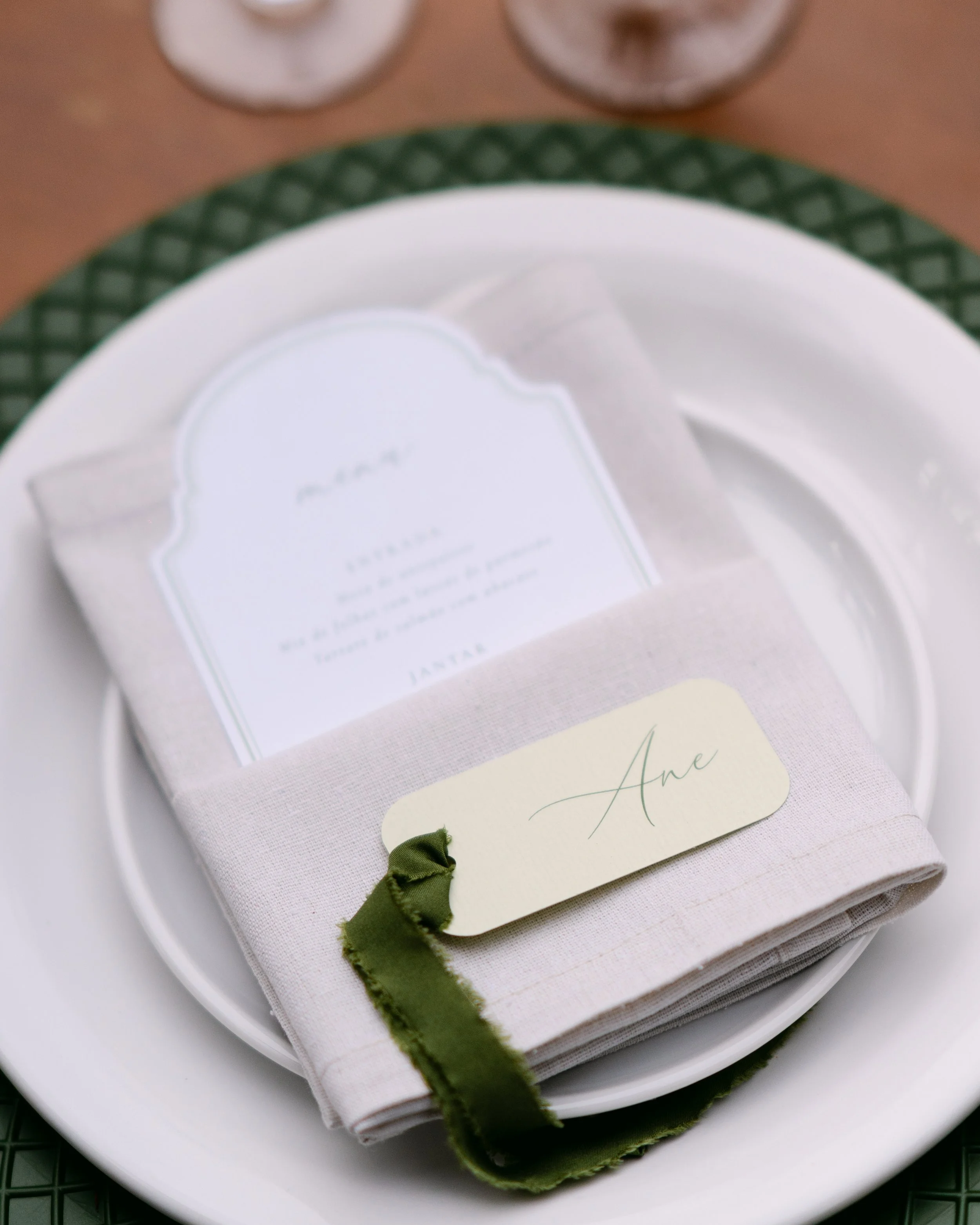 É importante que a identidade visual seja respeitada do convite até a papelaria do dia, para que todas as escolhas reflitam a personalidade dos noivos com harmonia e ajudem a contar sua história de amor.